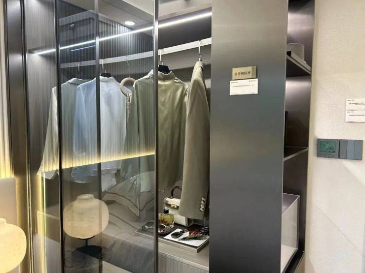 另外,样板房里衣柜的深度只有约48厘米。衣柜里挂着几件单薄的衬衣,看房者张先生觉得,羽绒服等厚衣服可能挂不进去。