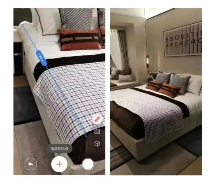 次卧的床上同样放着一张提示牌,写着,“此床架尺寸为:长约1.82米,宽约1.32米,敬请留意。”该长度与记者手机测量软件测量长度也基本一致。不过,记者留意到,样板房里除了基本的床、沙发、餐桌等必备家具,全屋没有摆放衣橱,也没有其他储物柜。
