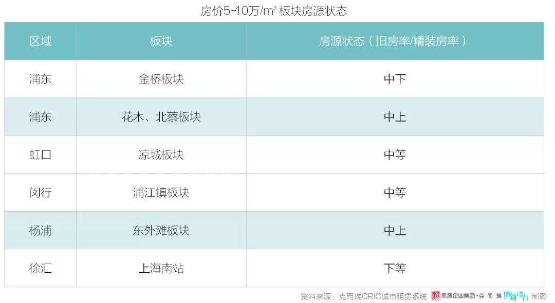从剩余 5 个板块的房源状态来看,陆家嘴是著名的商业区,内长宁板块历史与现代交融,文物保护单位众多,二者作为上海热门地段,区域内房源稀缺且大部分为旧房;相较之下,南浦和源深洋泾房屋条件较好。