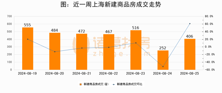 【上海成交日报】08月25日新房成交406套;涨价房源83套