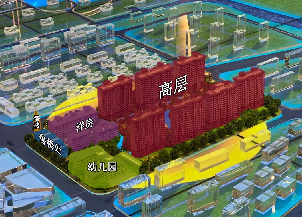 整个项目,由3栋7层住宅楼、7栋16层住宅楼和1栋商业楼组成,并配建一个幼儿园。