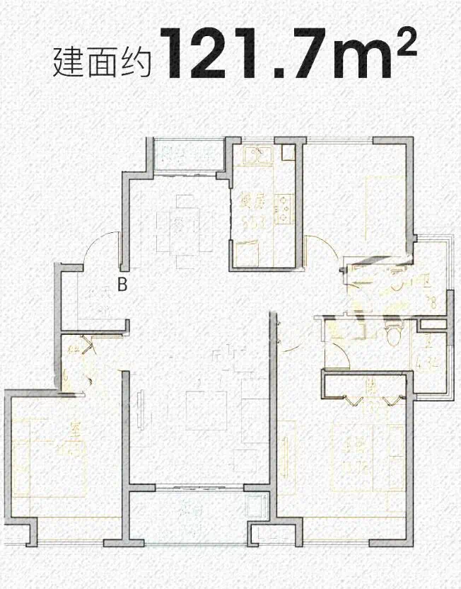 约156㎡3+1房,户型方正,南北通透,双卧朝南,并且拥有南北双阳台。北侧还设有多功能房,可作为书房或保姆房使用。