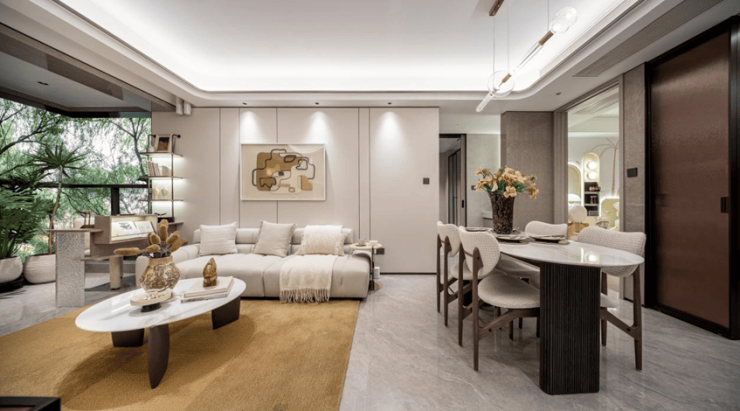 全功能奢质精装:从高性能主义出发,甄选日立、唯宝、高仪、科勒、方太、滨特尔等国际精装品牌;叠级吊顶+弧形金属勾边+铝合金踢脚线,打造超越市场期待的超配产品。
