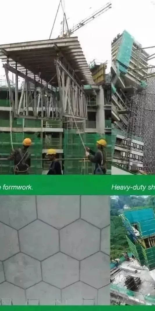 项目设计了7个预制重型脚手架分段套件,用以跟上每个构件的施工周期。与传统的脚手架系统相比,估计的生产率提高约为115%。同时,大量使用预制构件,包括民防门框、楼梯、种植箱和双层板。与现浇施工相比,使用预制构件令生产效率提高了约80%。另外,项目还采用各种生产模板,如水平工作台模板和立式钢模板,缩短了施工周期。与传统的木材模板相比,估计生产率提高了约80%。