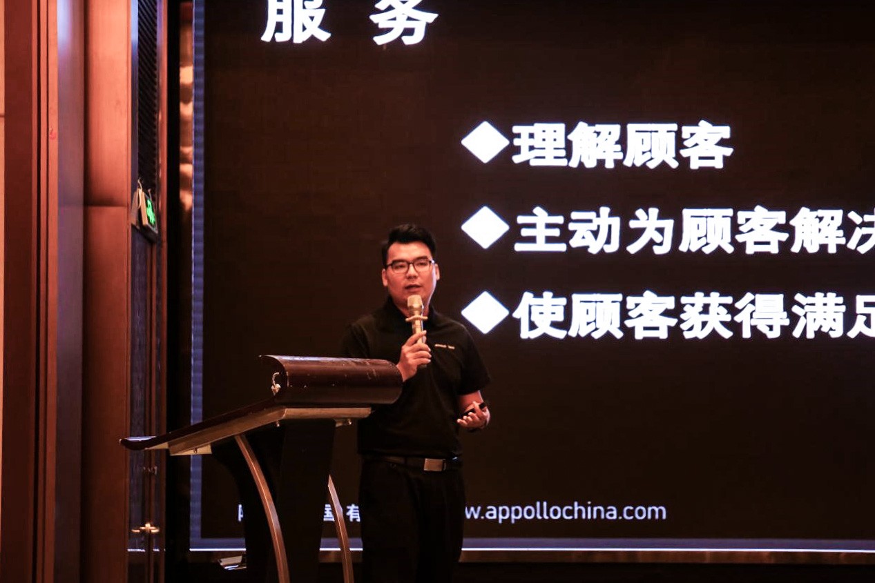 阿波罗国内销售总监刘海均讲述了产品营销策略和市场拓展、顾客服务等内容,积极拥抱市场变化,全力帮助新老经销商快速成长、提升在当地市场的竞争优势、走向成功。