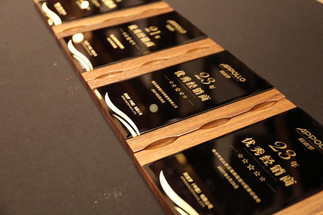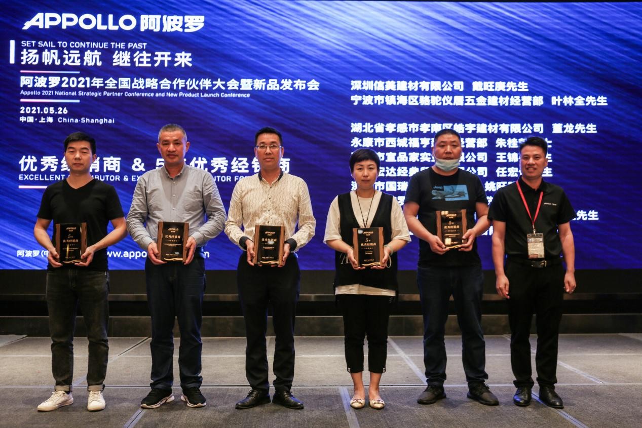 到了备受瞩目的颁奖环节,由阿波罗董事长陈志雄、副董事长胡小萍及公司高层领导为多位战略合作伙伴颁发优秀忠诚经销商荣誉奖杯,他们同舟共济、坚定前行的精神,给予了现场经销商们极大的振奋和鼓舞。