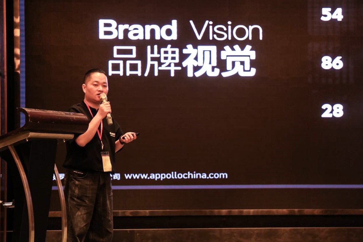阿波罗市场总监庄义浩从品牌形象、产品设计、数字媒体新零售等方面展开话题,全渠道推广和数字营销提升品牌影响力和竞争力,打造品牌销售新通道,加速推进经销商们多渠道引流,助力经销商们快速抢占市场、互利共赢。