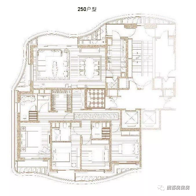 ▼下图为九庐一期的250㎡户型示意图