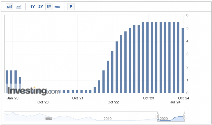 美联储自2022年3月至2023年7月连续11次加息,累计加息幅度达525个基点。过去一年间,美联储将联邦基金利率目标区间维持在5.25%至5.5%之间,为23年来最高水平。