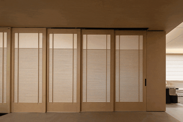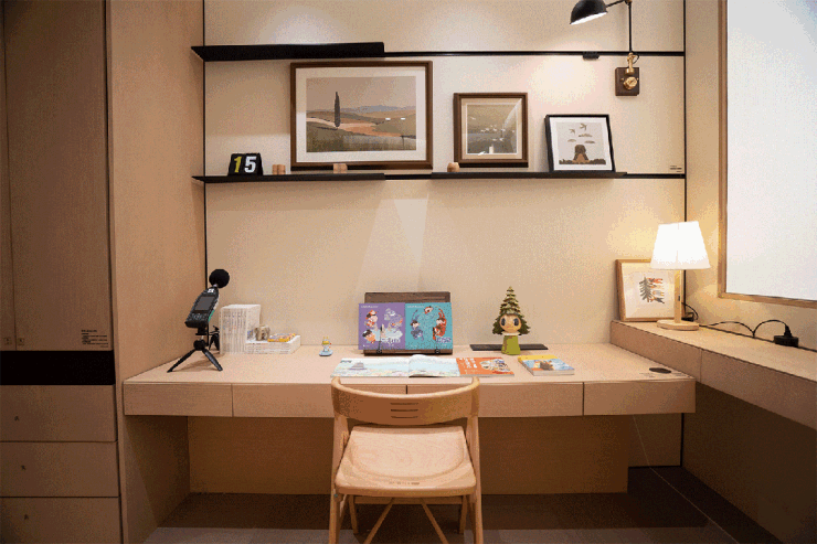 书柜搭载智能电动操控系统,平时内推可分隔出独立小书房与活动室。