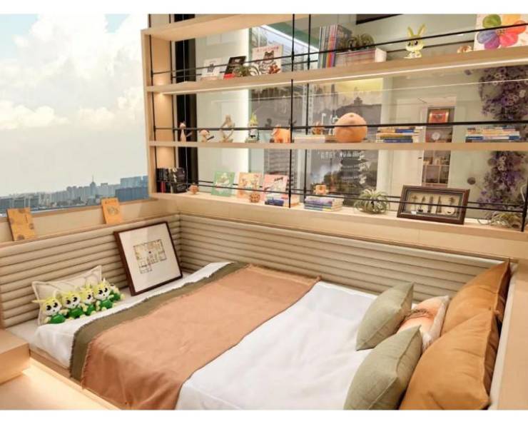 客卧的床同样暗藏玄机:日常“隐形”成背景墙的一部分,需要时一键展开即可展开,美观与实用完美平衡。