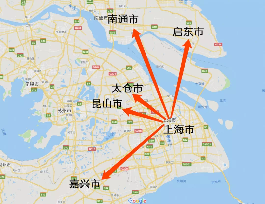 如果以空间距离来划分,50公里为界,环沪为启东、太仓、昆山、嘉善,如果以100公里为界,在这个范围环沪为,南通、无锡、苏州、嘉兴,再加上宁波和绍兴。