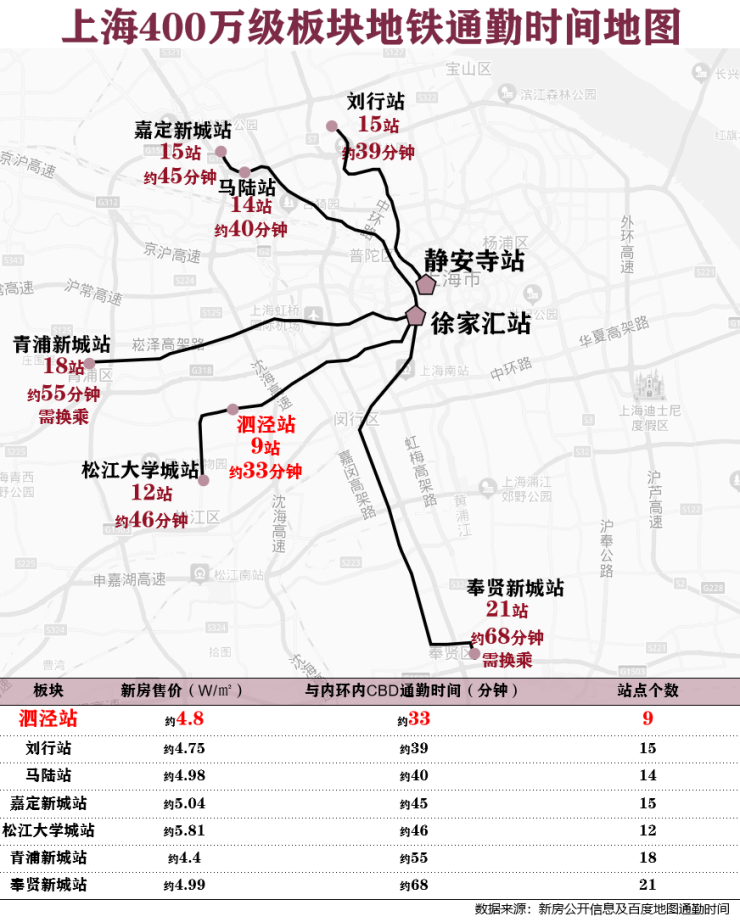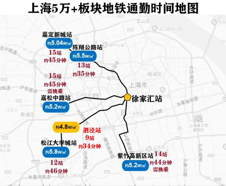 1.2 泗泾站通勤时间甚至优于多数5W/㎡+板块。