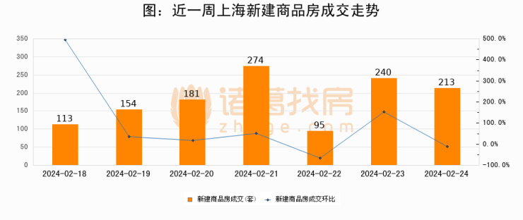 【上海成交日报】02月24日新房成交213套;涨价房源201套
