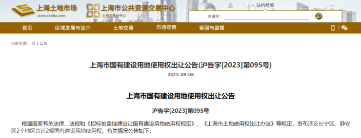 分别为:长宁区程家桥街道248街坊地块、静安区中兴社区C070202单元地块 , 均位于上海的中心城区,区位核心,属性优质,预计将产生较高的竞争预期。