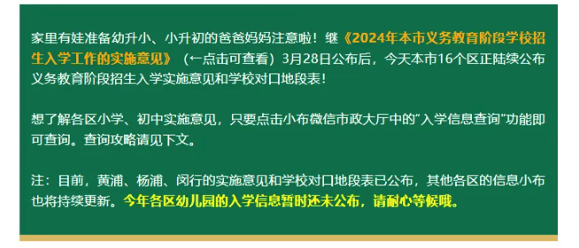 2024年上海各区幼升小、小升初招生细则,终于来了!