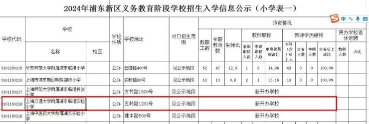 此外,在浦东教育局官网同步公示的《2024 年浦东新区义务教育阶段学校招生入学信息公示(小学/初中)》显示,泥城喜提上海交通大学附属浦东临港实验小学和上海交通大学附属浦东临港实验中学。