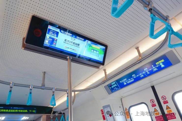 除此之外,作为上海数字化城市建设的组成部分,市域机场线动车组引入了一系列智能化前沿技术,整车配备了多媒体信息显示屏、电子地图、车内外显示器等,这些信息显示屏可与地面站台实时保持信息联动,方便乘客及时掌握乘车信息。机场线动车组还设置了客室智能分析系统,实现车厢拥挤度分析,车内乘客可根据车厢客流强度变化选择舒适车厢乘车。