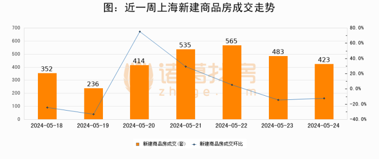 【上海成交日报】05月24日新房成交423套;涨价房源151套