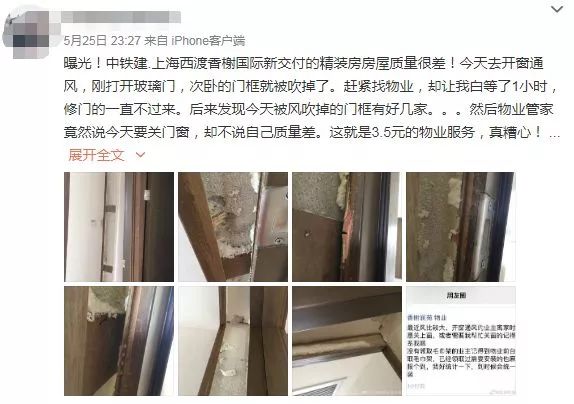 除了漏水问题,香榭国际还曾出现过房门连框带门一起被风吹掉的情况。