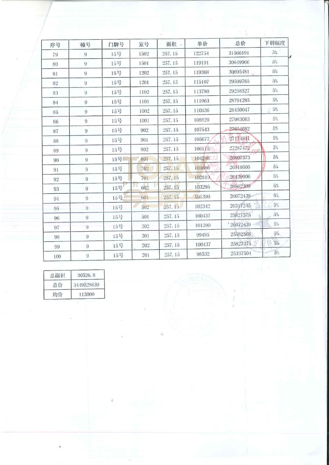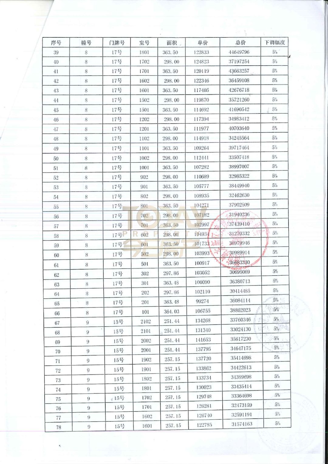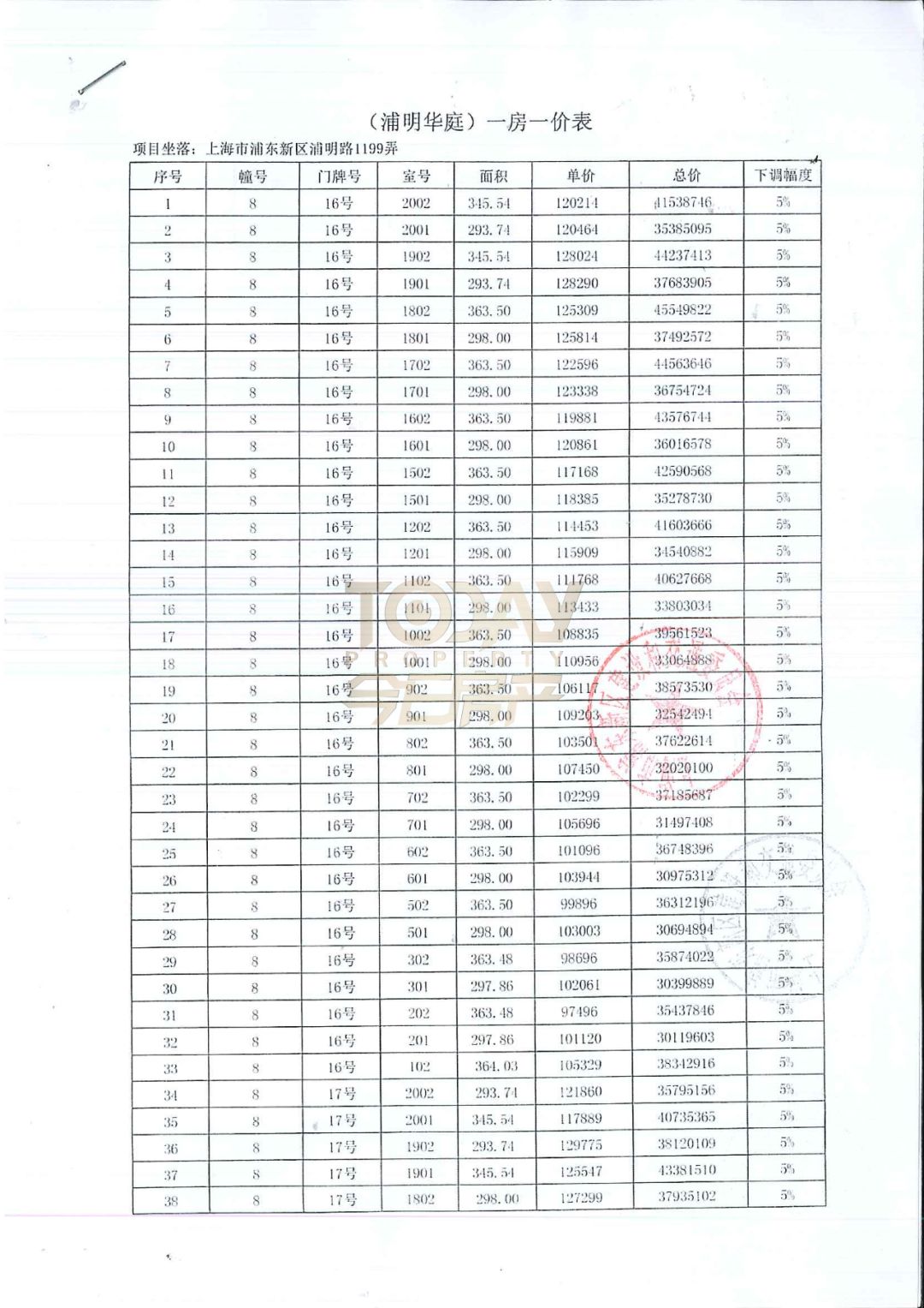 以下是完整一房一价表: