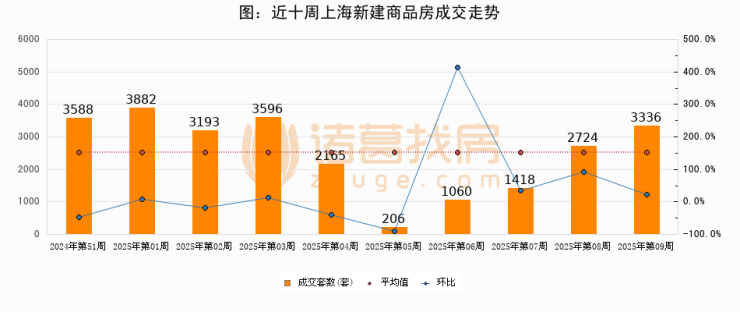 进入2025年第09周(02月24日-03月02日),上海新建商品房成交3336套,较上周增加612套,环比上涨22.5%