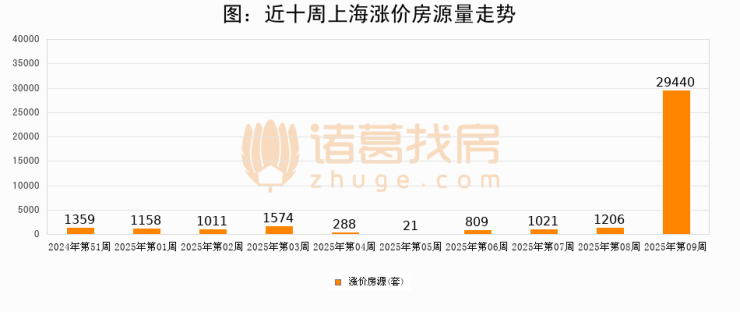 从调价房源来看,第9周上海涨价房源29440套,较上周上涨2341.1%。与此同时,9周涨价房源占比提升11.07个百分点,业主信心持续恢复。