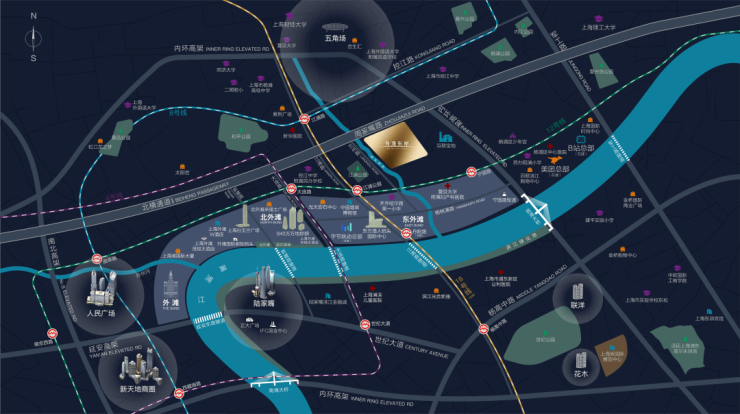 交通方面,金隅外滩东岸周边3轨交汇,8号线直达人民广场、前滩;12号线直达北外滩、南京路;18号线直达陆家嘴北滨江。自驾出行,项目周边4条隧道+杨浦大桥直达浦东,北横通道更是贯穿浦西核心地带。