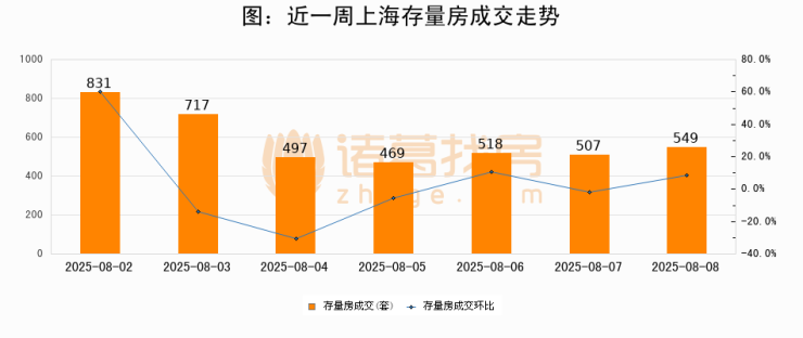 【上海成交日报】08月08日二手房549套;涨价房源129套