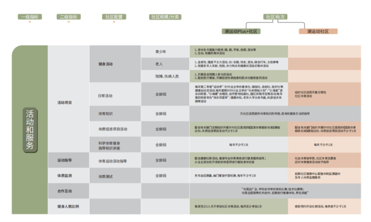 为此中奥联合中体梳理了整整7大板块的建设规范要求细则,从最基本的场地设施、体育器材等硬件,到软性的活动服务、体育组织、体育管理,事无巨细。