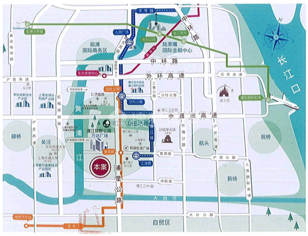 除此之外,项目东侧约500⽶是奉浦快线(BRT) 鲁南路站,1站到达地铁8号线沈杜公路。