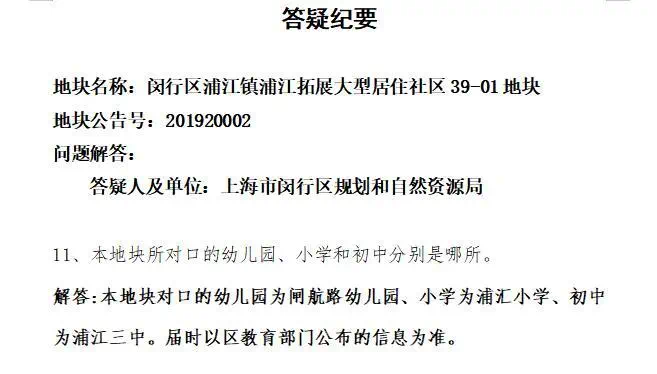 教育配套方面:根据此前该地块相关答疑纪要:项目对口的幼儿园为闸航路幼儿园、小学为浦汇小学、初中为浦江三中。(届时以区教育部门公布的信息为准)