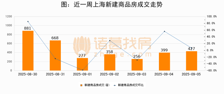 【上海成交日报】09月05日新房成交427套、二手房577套;涨价房源119套