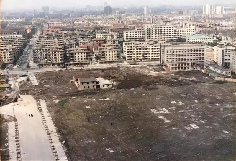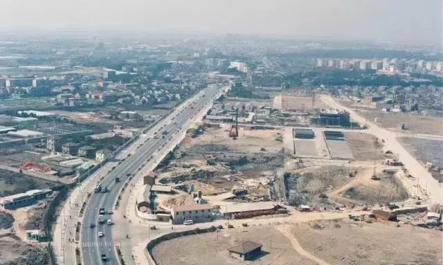 建设中的虹桥开发区延安西路两侧的宾馆群