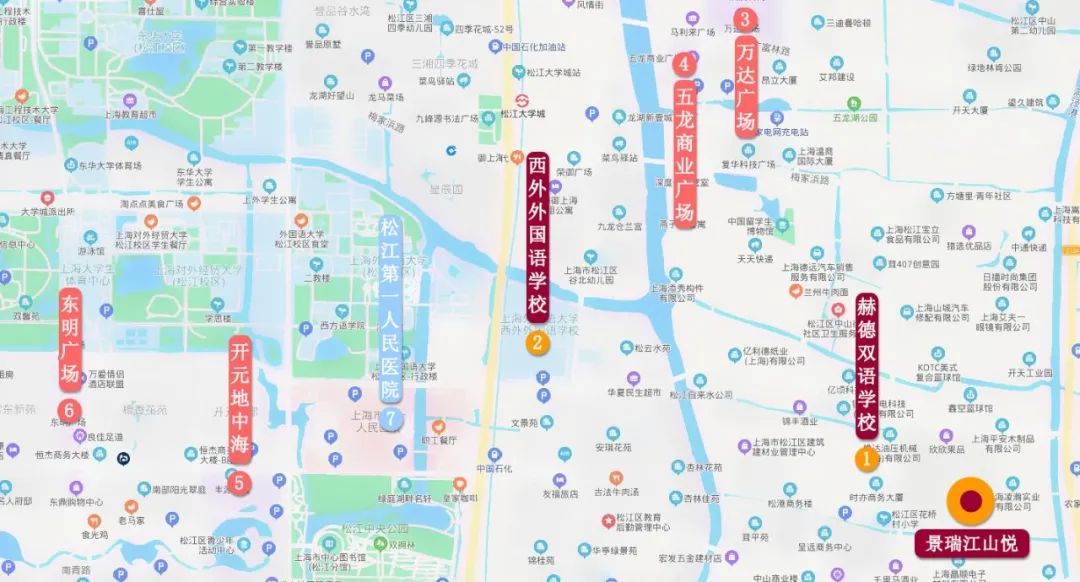 教育配套方面:项目周边2公里范围内坐落着包括上海师范大学附属外国语小学、华东师范大学松江实验中学、上海外国语大学西外外国语学校、上海赫德双语学校在内的多所学校。(仅作为距离参考,不视为学区承诺,对口情况以当年度教育部门公示为准)