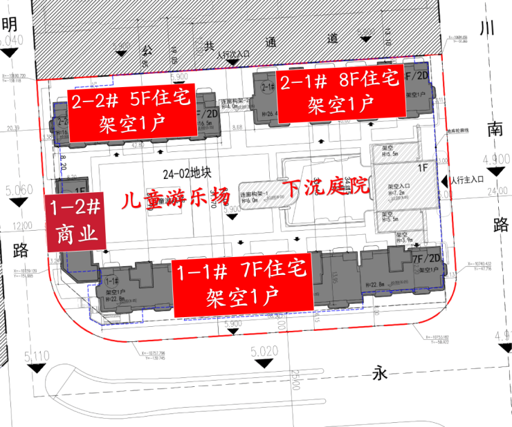 地块拟建5-8层洋房产品,一楼全部架空,社区内部有下沉式庭院,儿童游乐场;另需建设部分商业配套设施等。
