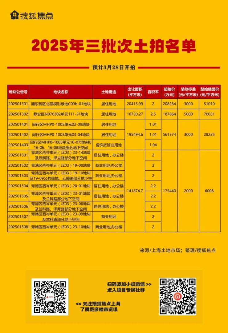 三批次土拍3月28日开拍,大宁纯宅地起始楼面价70031元/㎡