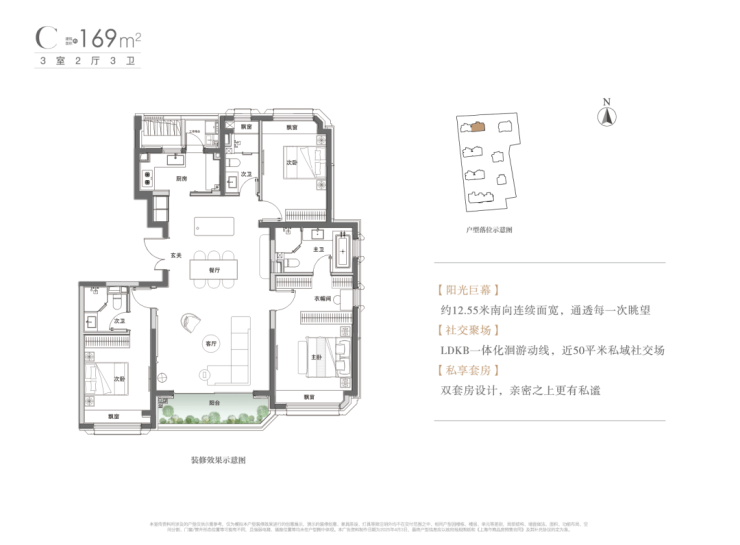 据悉,项目可售商品房预计共174套,另有22套保障房。主力户型有两个:建面约120㎡3房、建面约143㎡4房,预计二季度入市。