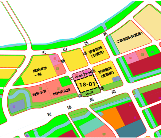 青浦区西虹桥蟠东路西侧18-01、18-03、18-04地块东至蟠东路、南至崧泽大道、西至蟠文路、北至龙联路,为商住文体综合用地,其中18-01地块为住宅用地,住宅套数下限293套。