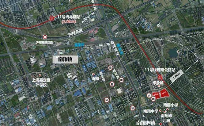 地块北侧紧邻南翔印象城和11号线陈翔公路地铁站,南侧紧邻融信海纳印象,2021年融信开盘均价为5.9万/㎡。