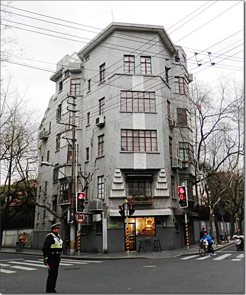大楼,巧妙借助地形,为一幢半月形的公寓,共9层,高34.45米,建筑面积2887平方米,并设有电梯。为现代主义建筑,钢筋混凝土结构,外墙贴深褐式面砖,立面强调横线条处理。曾为中国银行西区分行,1994年被列为了第二批上海市优秀历史建筑。