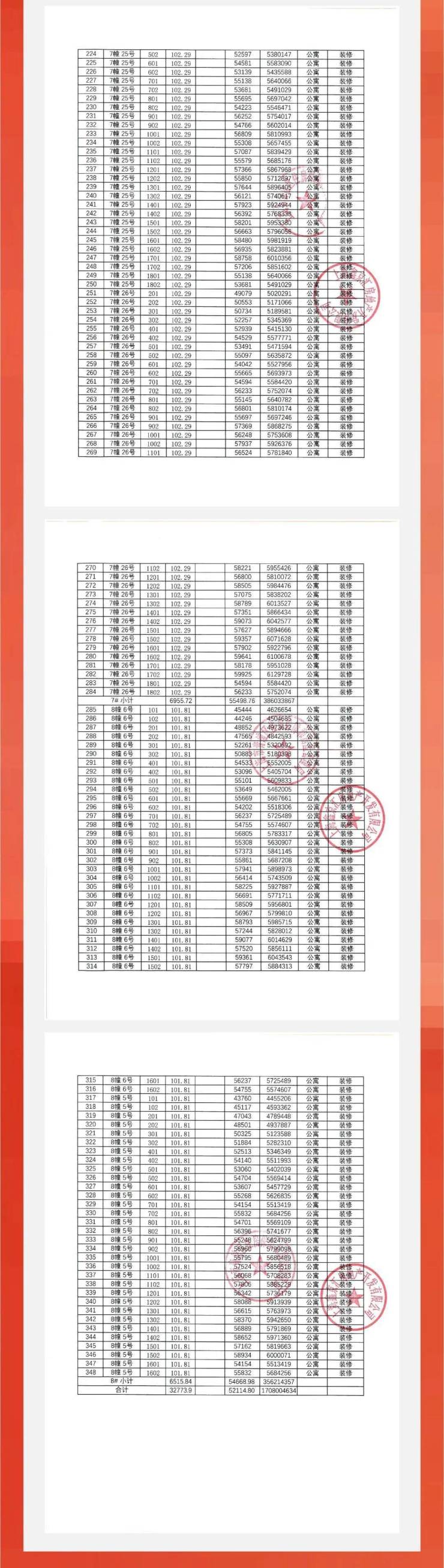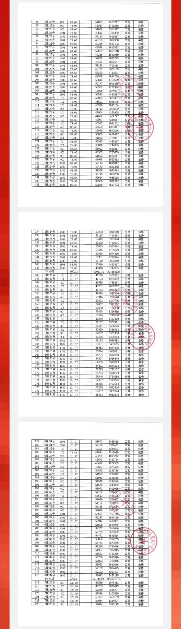 一房一价表: