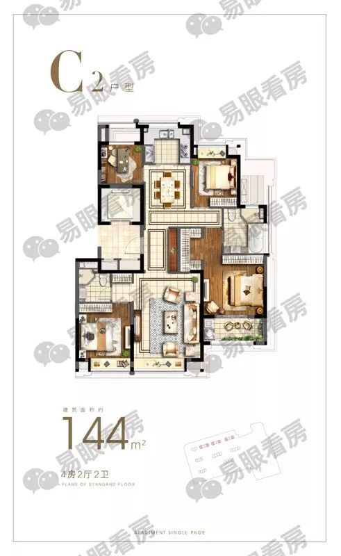 其中,96平和97平户型大部分为2梯4户,101平和部分96平户型为2梯3户,123平和144平户型为2梯2户。