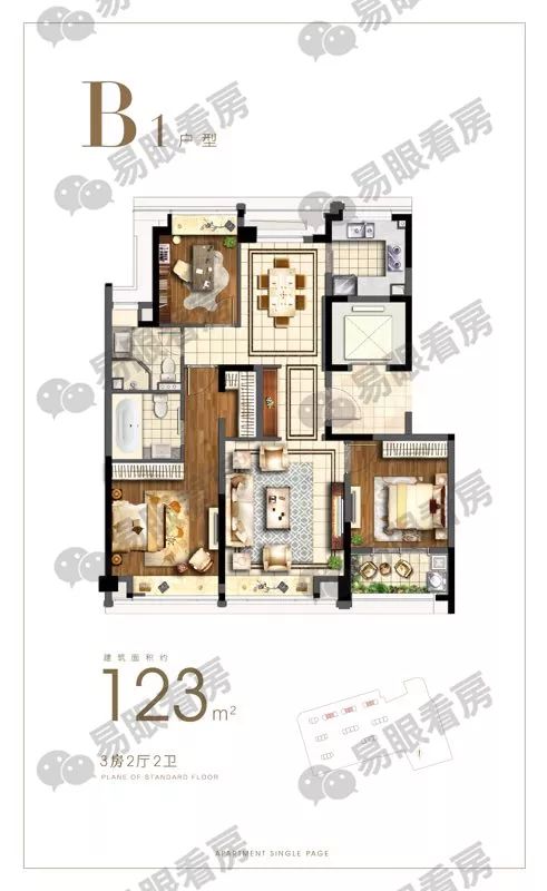 而从户型图上来看,123平及144平的大面积产品过道都占据了不小的面积,卫生间布局也存在着不太合理的地方。