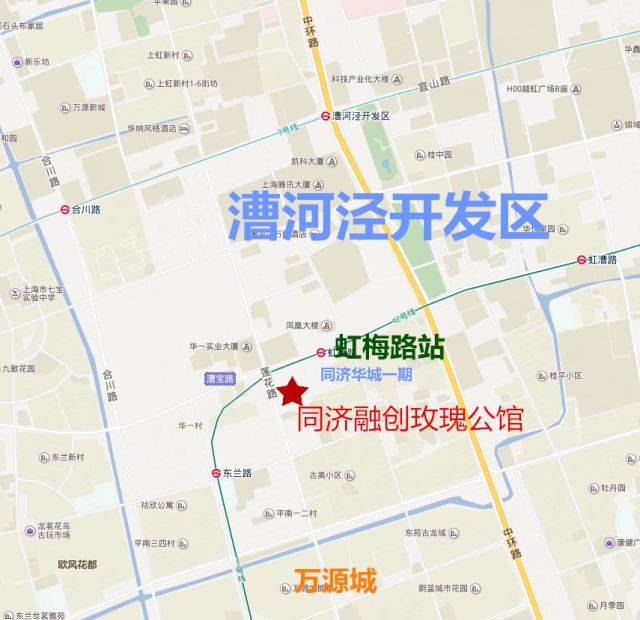 同济融创玫瑰公馆位于漕宝路与莲花路交汇处,在项目工地的围墙外就能清楚的看到地铁12号线虹梅路站预留的3号出口。