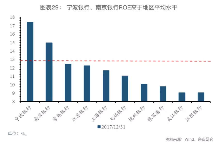 近4年来华东地区中小银行的ROE一直保持着缓慢下降的趋势。2014-2017年间以发债城商行农商行数据计算,华东地区城商行平均ROE下降约1%、农商行下降近3%。部分农商行或存在前期为排队上市,短期加快做业绩提高ROE,之后业绩反转的情况。我们梳理江浙沪徽地区A股上市银行情况,除宁波银行、南京银行ROE保持在平均水平约13%以上外,其余上市银行ROE低于四地的中小银行平均水平。以下着重分析两家盈利先进宁波银行、南京银行近年的业绩拆分情况。