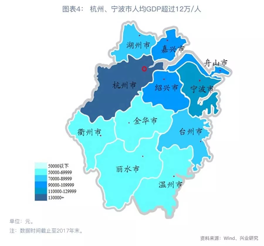浙江省:区域特色民营经济发达,以发展个人私有经济为主。整体呈现区域性块状经济,具体区域有传统上熟知的海宁皮革服装、永康五金制品、诸暨珍珠和嵊州领带等。在产业结构转型下,各区域在传统经济的基础上发展高新产业聚集区,聚集区中重点产业占比50%以上,如宁波汽车制造、国际贸易业、义乌商贸服务等。2016年末,浙江省产业聚集区固定资产投资额4017亿元,世界500强企业个数61个。不同地区的情况来看,杭州市、宁波市发展较好,人均GDP超过12万元/人,衢州市、丽水市、温州市人均GDP在全省排在靠后位置。