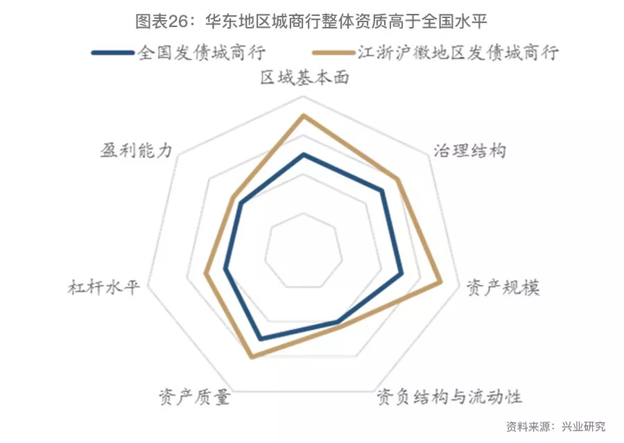 无论是银行数量资产规模,还是绩效资质,以江浙沪为主的华东地区银行均排名靠前。自上世纪90年代中期城信社开启改革,江浙地区率先开展城信社合并改制工作。2001年首批由县级农信社改制而成的三家农村商业银行也于江苏省成立,A股市场也形成了苏南地区为主的农商行板块。华东地区的区域银行作为改制中的弄潮儿,历经发展中的波折,也将率先尝试新业务。一般传统上的华东地区包括七省一市[1],区域内银行数量资源占全国发债区域银行60%以上,未来将分别进行探讨。在首篇区域银行地方篇中,首先重点分析以江浙沪徽四地为主的华东地区,并探讨区域银行新的发展方向。正文中华东地区仅指江浙沪徽地区。