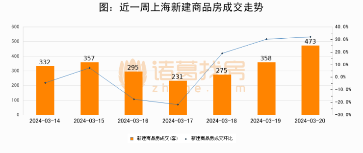 【上海成交日报】03月20日新房成交473套;涨价房源340套