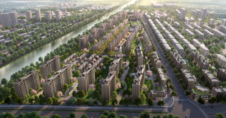 地块容积率同样为1.2,设计方案已公示,拟建9栋小高层住宅、8栋多层住宅、1栋社区配套用房(含开关站)、2栋配电房、2个门卫、1个地下1层汽车库等,同时配套建设绿化、道路、广场等总体工程设施。当前,项目已正式开工。